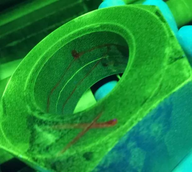 一般采用的是熒光磁粉,熒光磁粉的靈敏度遠遠高于黑磁粉。